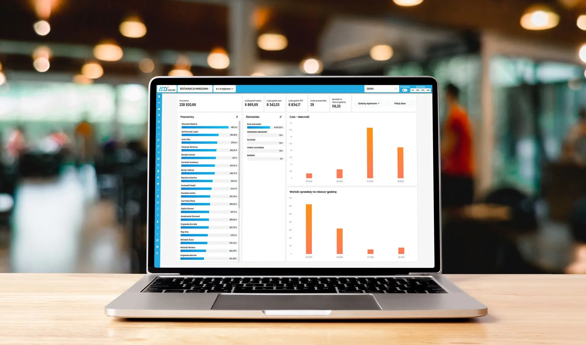 - Ewidencjonujesz czasu pracy z podziałem na sekcje lokalu, a nawet rodzaj zmiany.